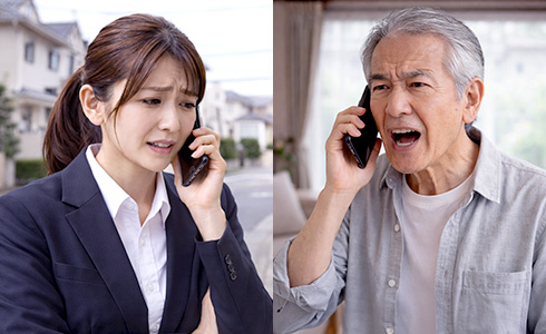 カスハラとは、お客さまや取引先などが立場の優位性を利用し、社会常識を超えた言動や要求を行い、働く人に精神的・身体的な負担を与える行為のことです。